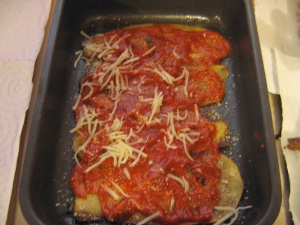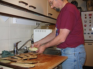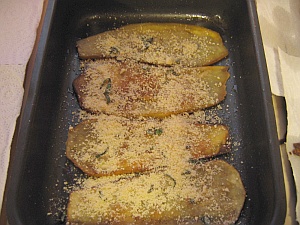 | Tämä ruokalaji, munakoisoa parmesanin tapaan, tuli erityisesti Sinille rakkaaksi iki-ihanassa Mediterraneossa Ha Noissa. Yritimme sitä tilata 25-vuotiskohtaamisen juhlinnassa, mutta paikallinen Ristorante Tiglio (nyt jo lopettanut) ei pystynyt vastamaan haasteeseen. Ja nyt uskalsimme itse yrittää tehdä sitä ja ensi kerta antoi lupauksia. Jarin 50-vuotispäivillä tarjoillaankin sukulaisille yllätys. Tässä ohje, jonka läpivieminen vei kolme tuntia, mutta ei sellaista edes joka kuukausikaan tehdä: |
