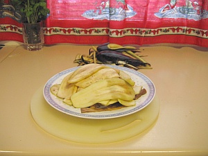 Kun viipaleet ovat itkettyneet, huuhtele pikaisesti vedellä ja laita kuivumaan talouspaperin tai pyyhkeen päälle. |
