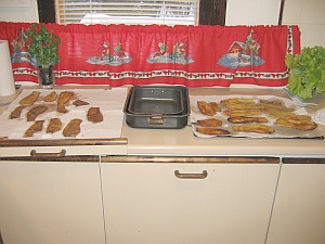 Tässä paistetut viipaleet kuivumassa vuokaa varten. Laita uuni päälle 175 - 200 °C. |