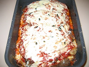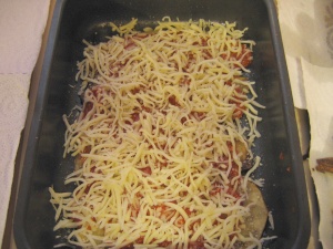 Ja jatka kerros kerrokselta, kunnes aineet ovat lopussa. Päälle parmesanjuustoa. |