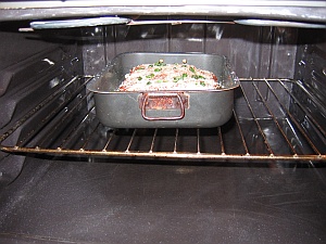 Laita uuniin 40 - 60 min. Seuraa tilannetta. 10 min ennen loppumista voit laittaa vielä halutessasi mozzarellajuustoa päälle. |