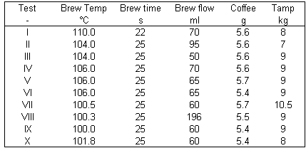 ml from 110 degC and two single shots from 104 degC (the shot is on the left