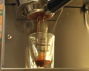 tehty tripla espresso. Lasin muoto edesauttaa mahdottoman paksun creman