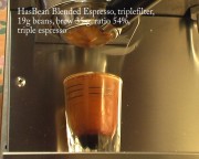 kahvia, vastaten tripla espressoa 54% uuttoasteella.